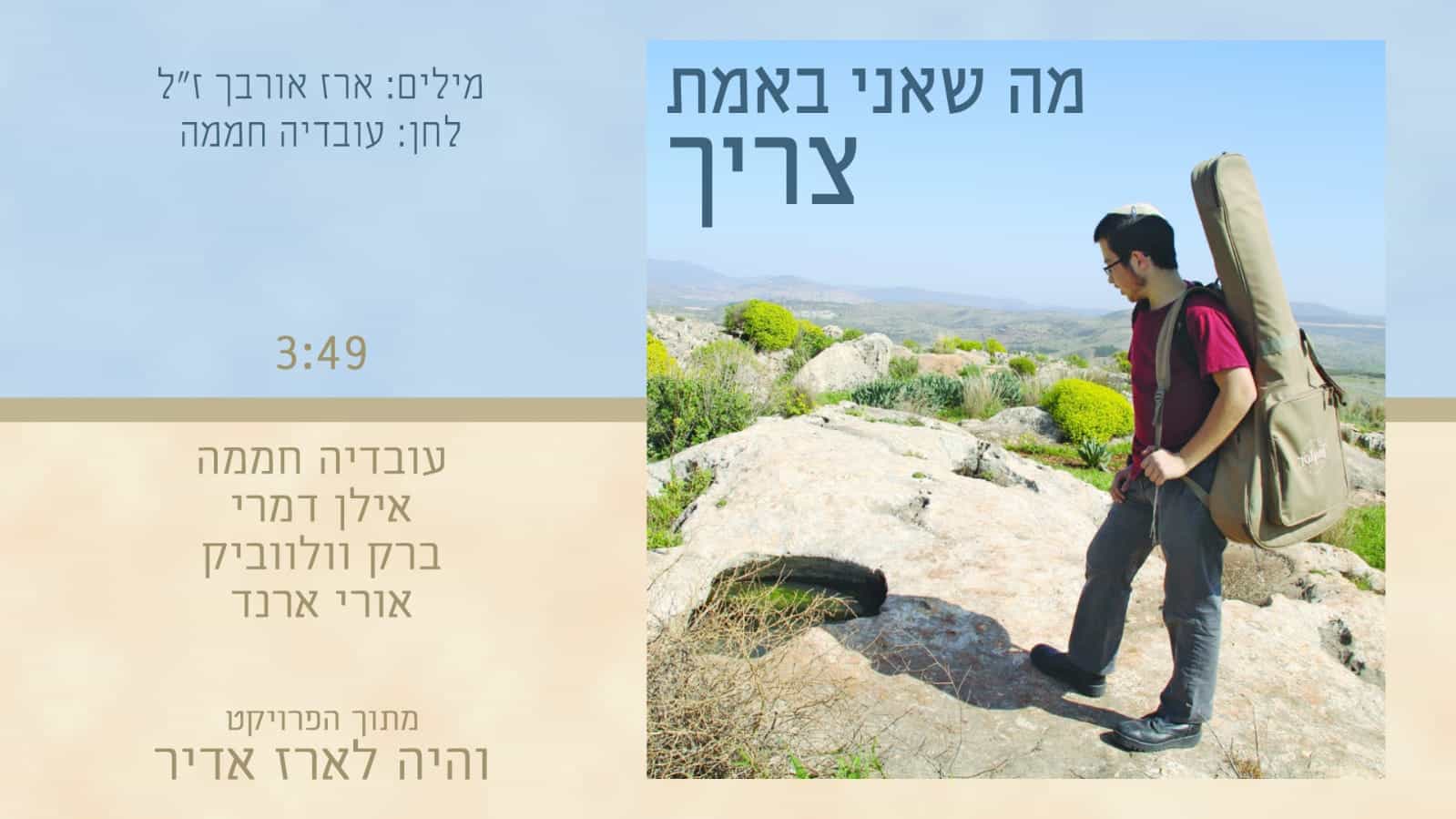 פרויקט חדש ומרגש מבית היוצר של עובדיה חממה: "והיה לארז אדיר". מיזם מוסיקלי המנציח את שיריו של סג"מ ארז אורבך הי"ד, שנרצח בפיגוע בארמון הנציב (י' בטבת תשע"ז, 8.1.2017) בן 20 היה במותו. שיר ראשון שכתב ארז הי"ד והלחין יבדל"ט עובדיה חממה מושק כעת – "מה שאני באמת צריך".