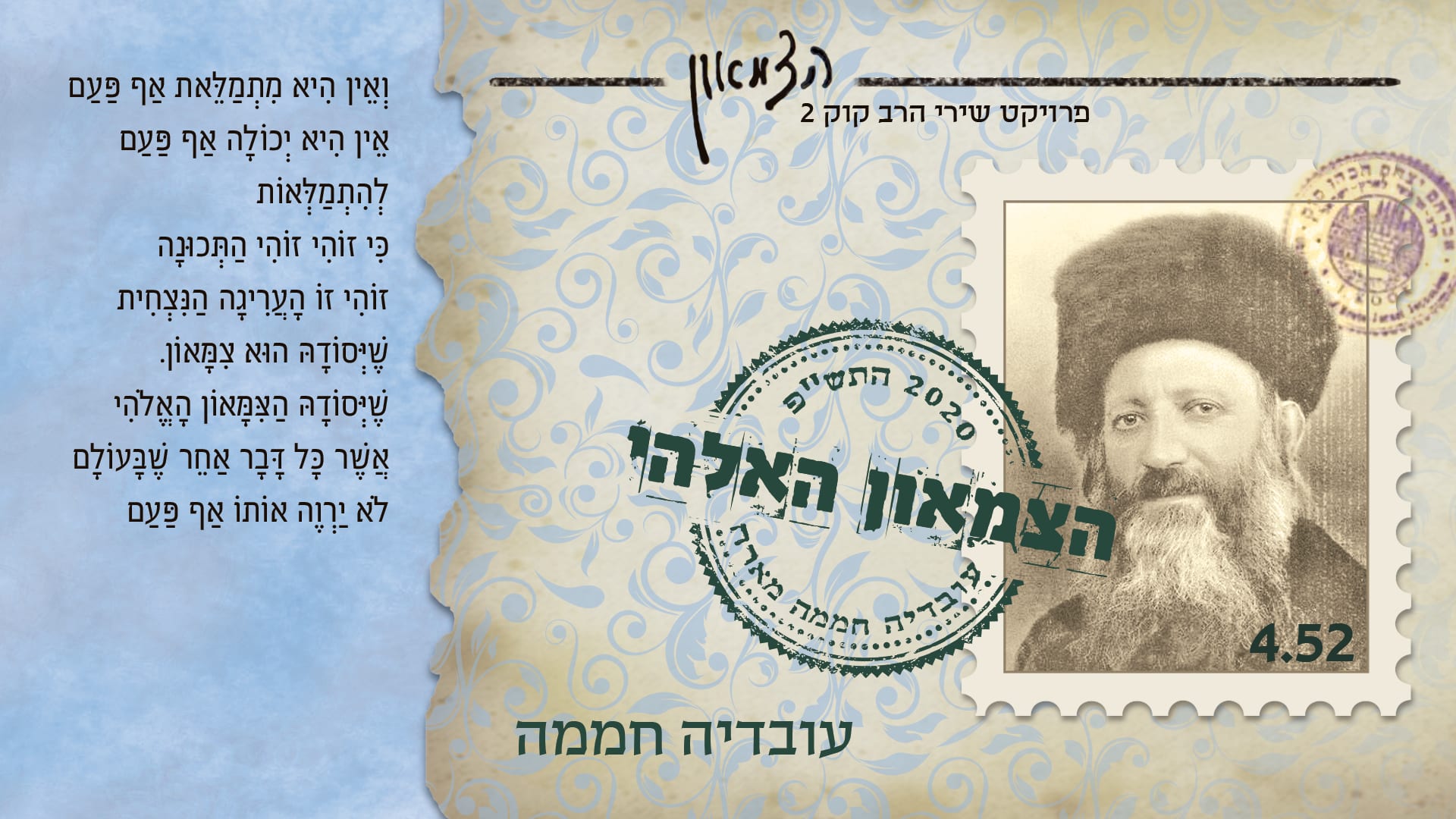 עובדיה חממה, מיוצרי המוסיקה היהודית הבולטים והמוערכים ("אנא בכח"), מוציא לאור לקראת השנה החדשה והימים הנוראים את "הצימאון האלוקי", שיר הנושא  מתוך פרויקט חדש שבדרך, אלבום שני משירי הרב קוק.